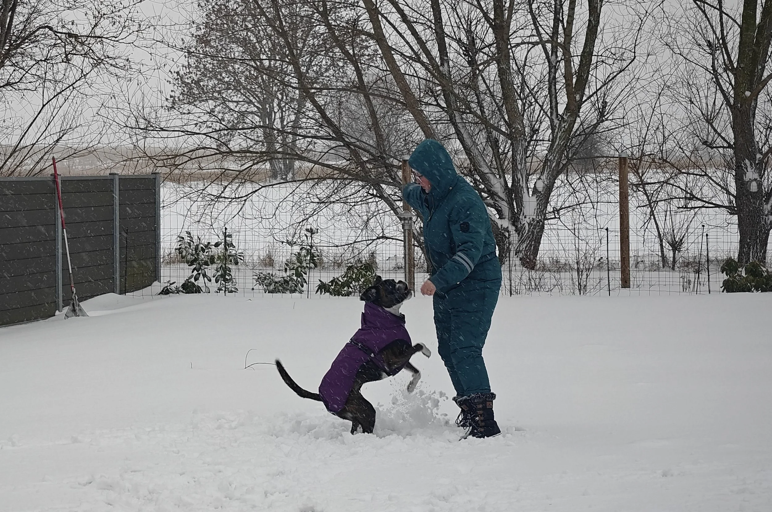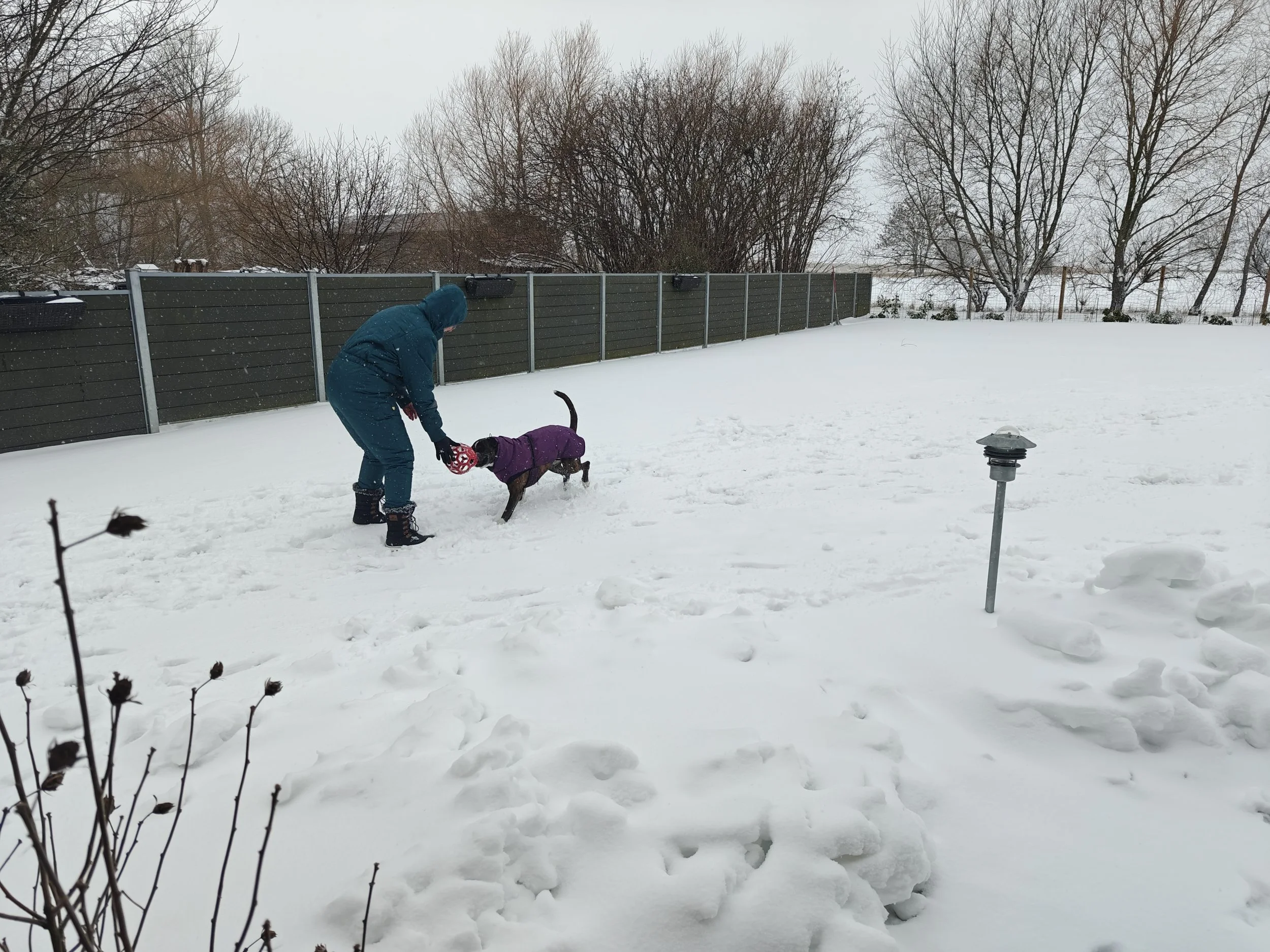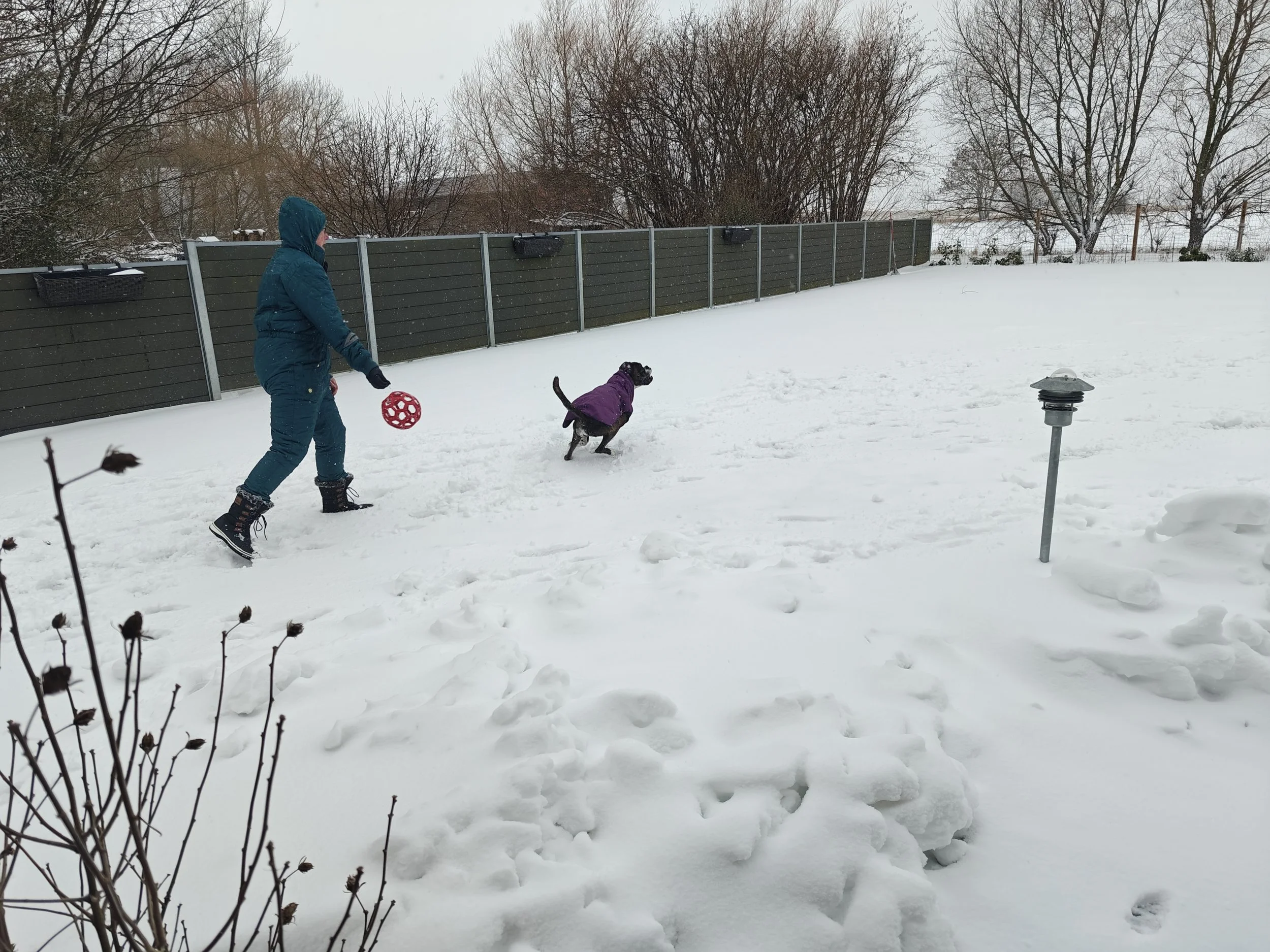 Wir haben es am meistens zu Hause genossen - wir haben so viel Schnee gehabt, dass wir nicht mit dem Auto unterwegs waren. Aber Diamond liebt Schnee, und wir haben oft im Garten gespielt.