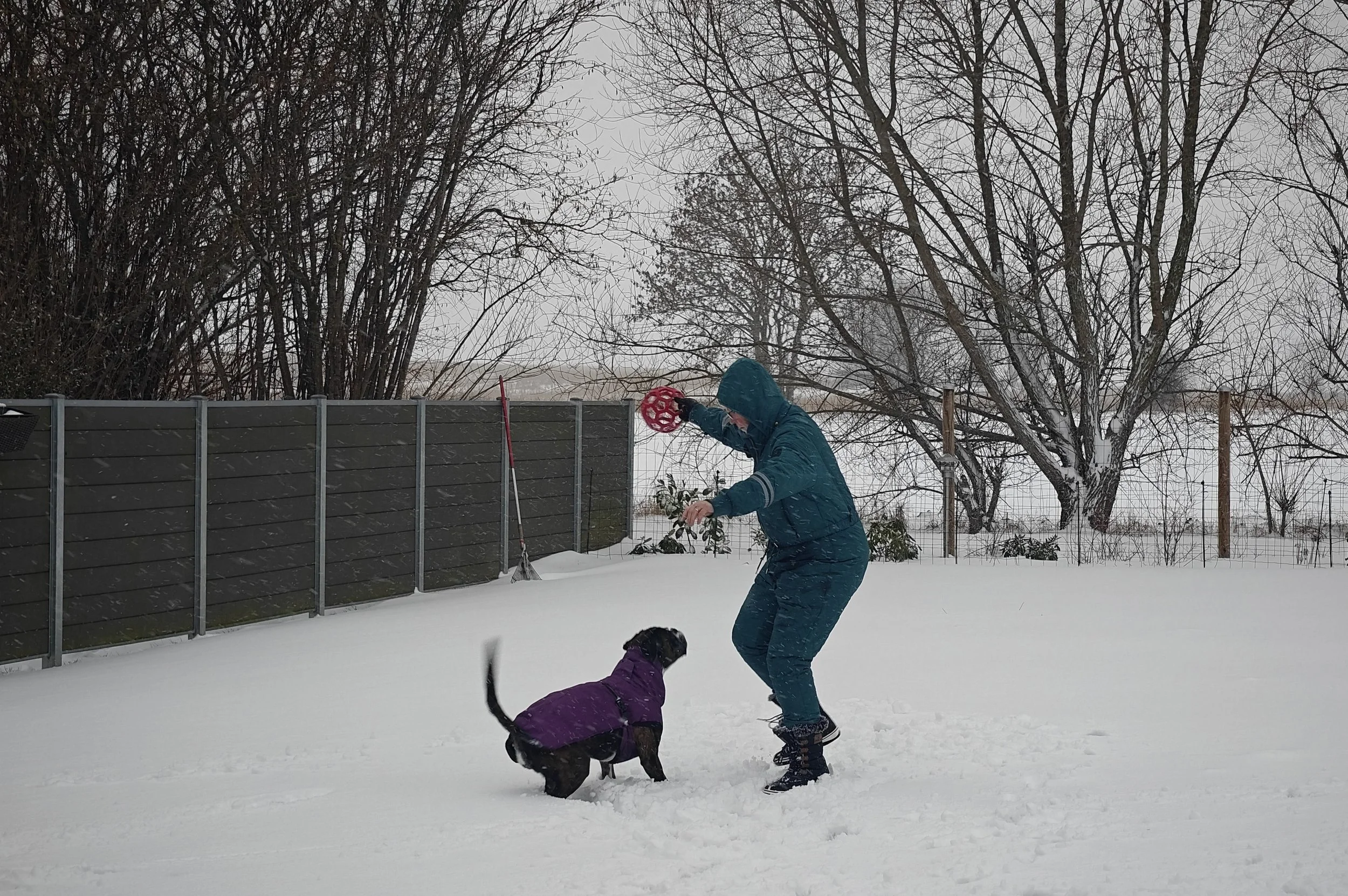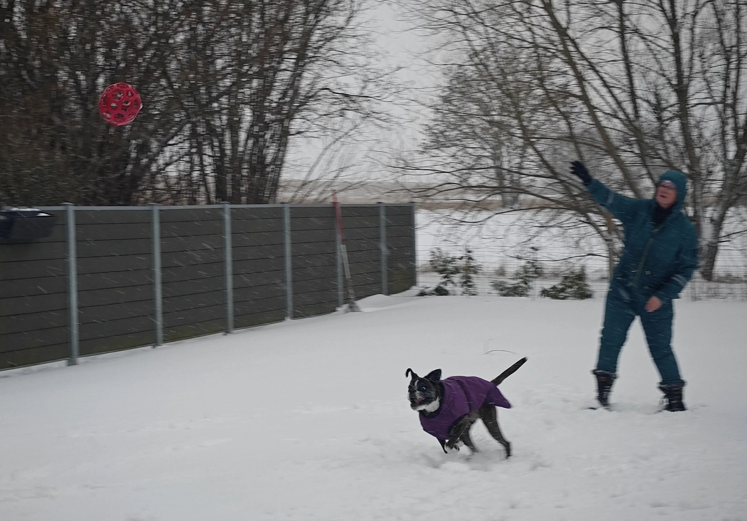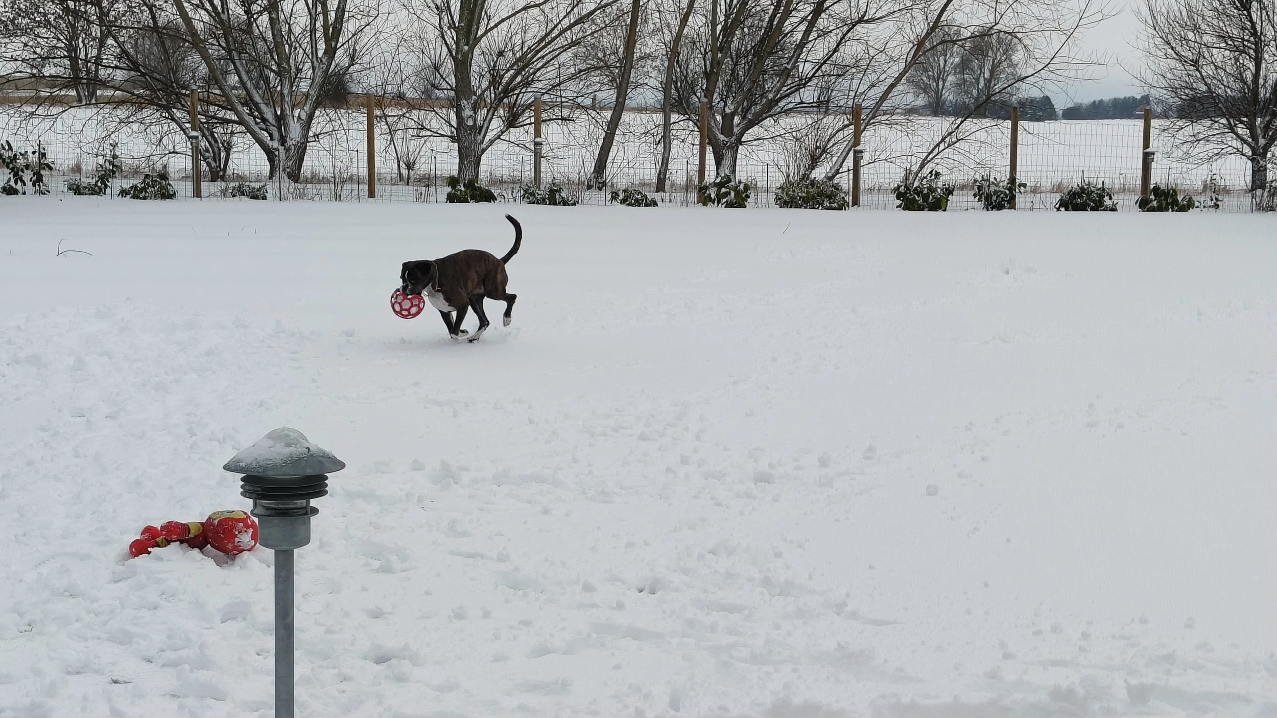 Wir haben es am meistens zu Hause genossen - wir haben so viel Schnee gehabt, dass wir nicht mit dem Auto unterwegs waren. Aber Diamond liebt Schnee, und wir haben oft im Garten gespielt.