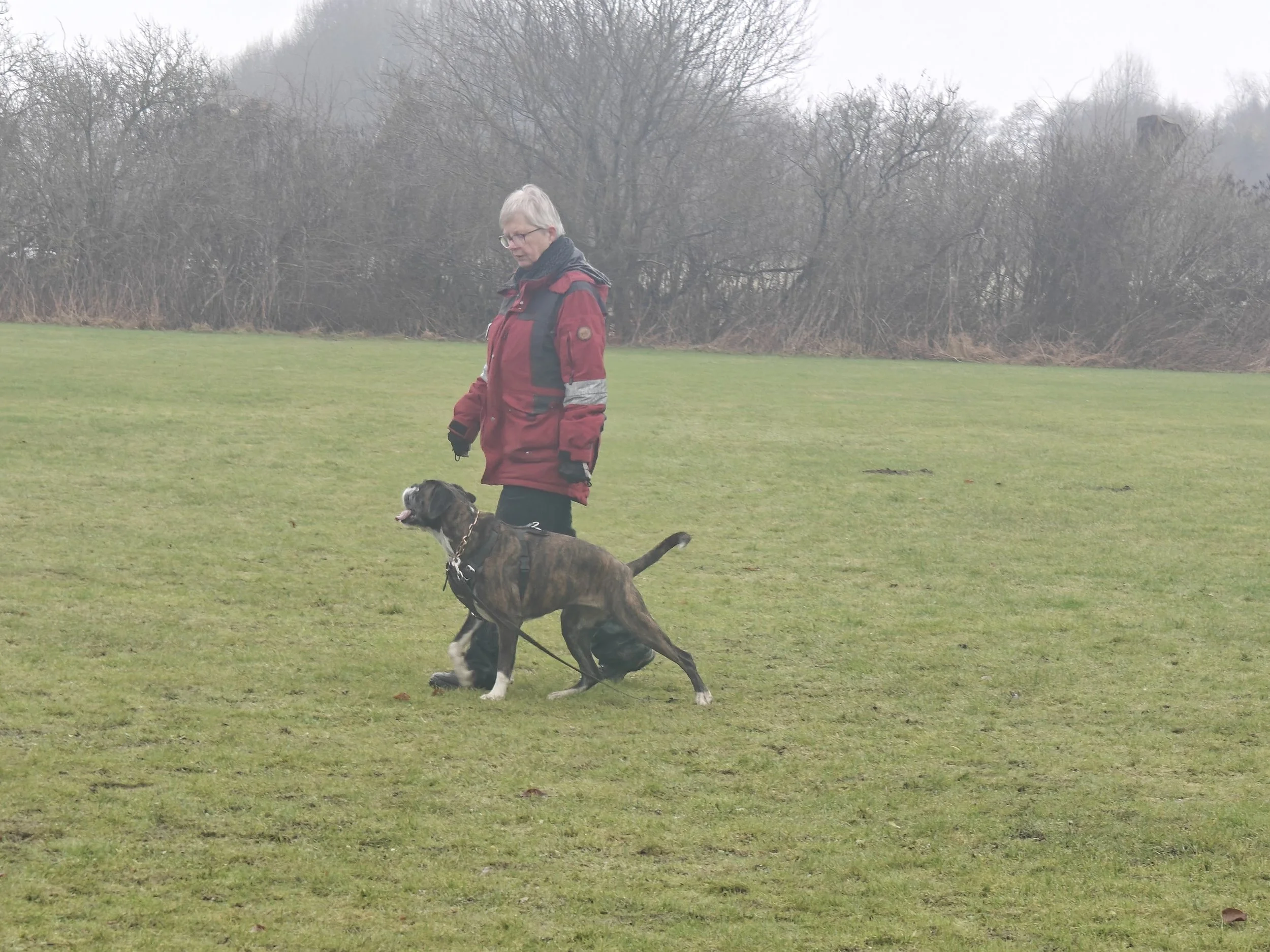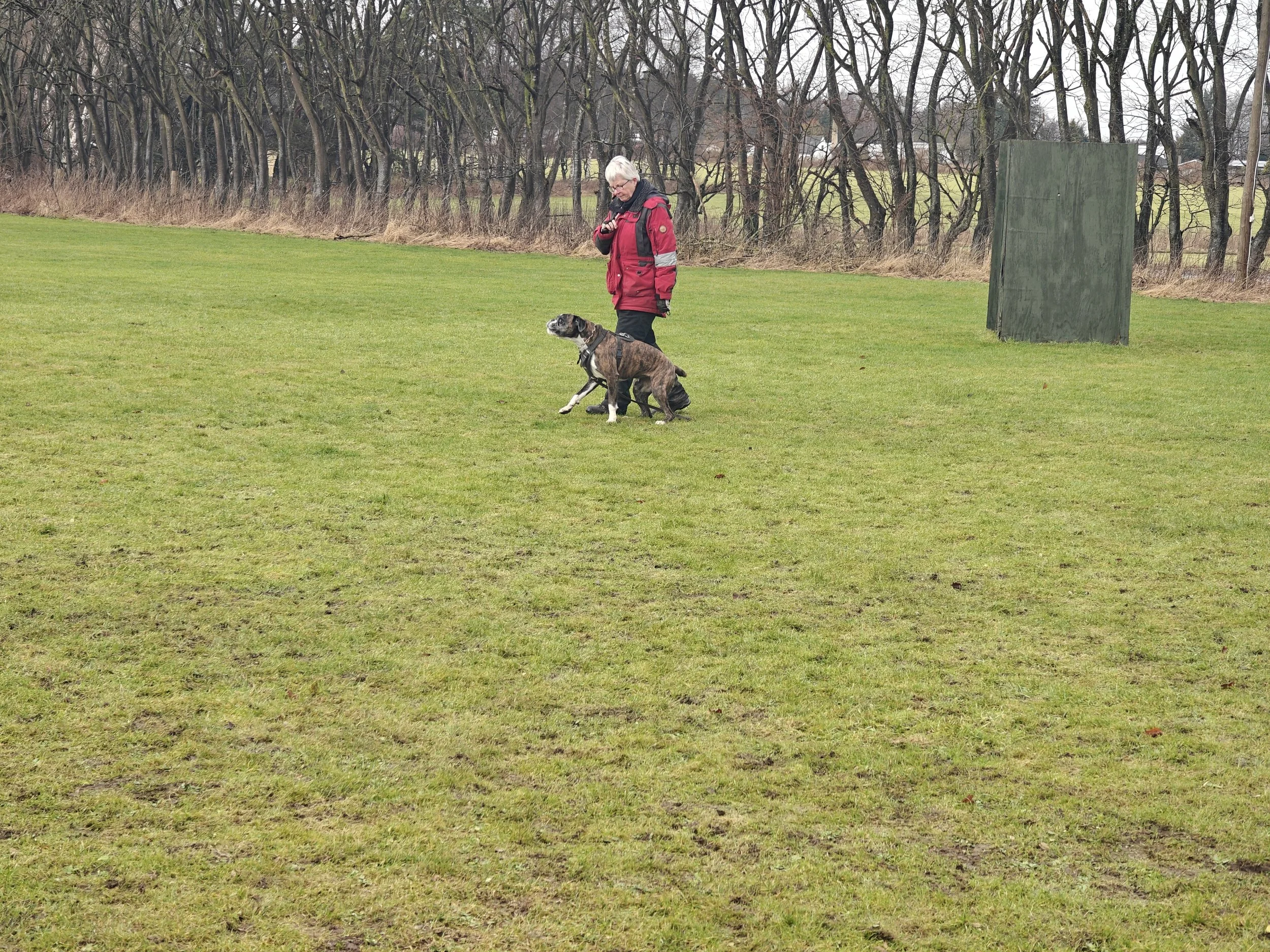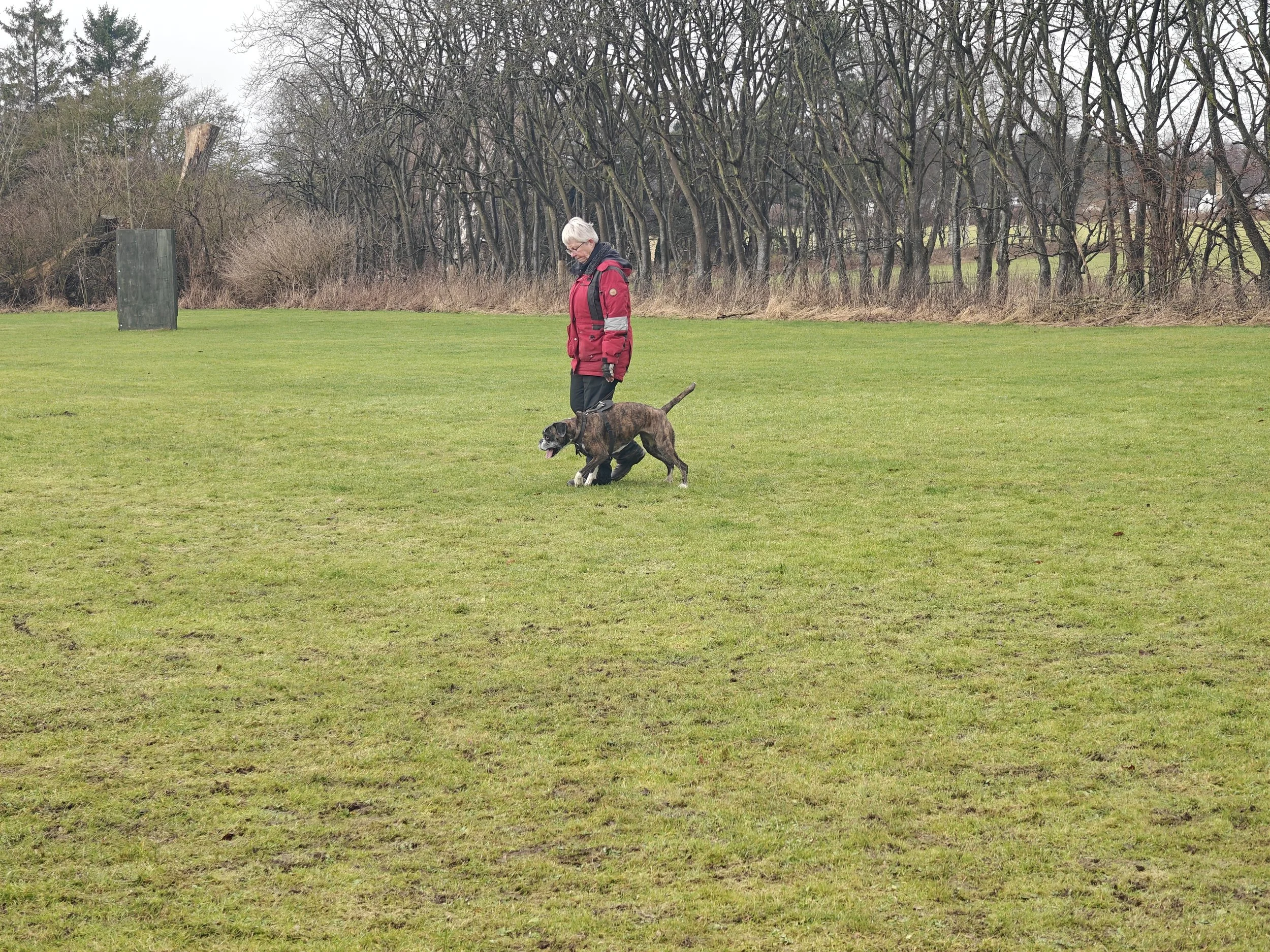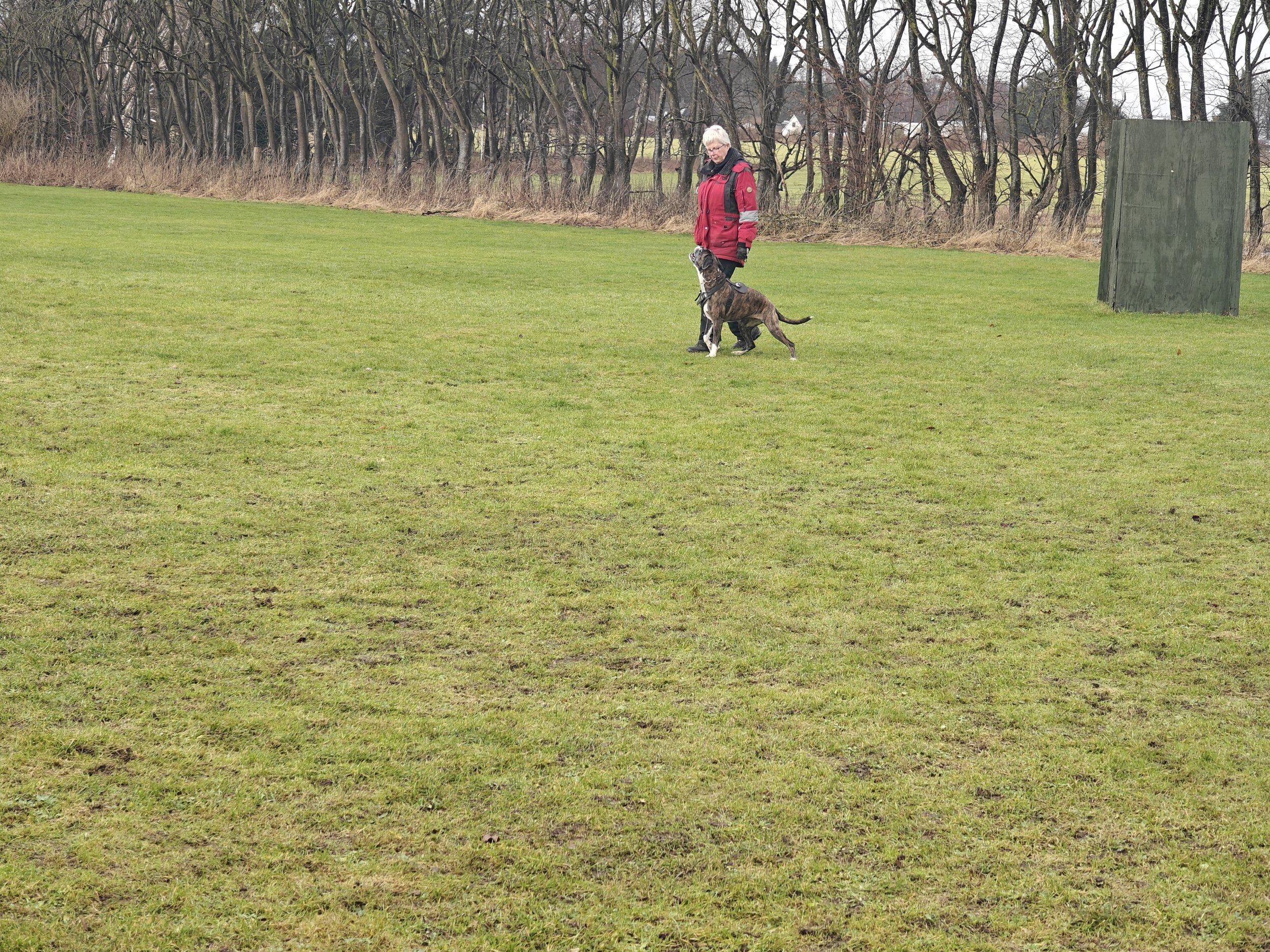 Diamond hat mit Sascha in Aarslev geübt, und wir haben in Halle gearbeitet, hier in unserer Gegend und in Sterup. Und jetzt ist es wieder möglich Fährte zu laufen.