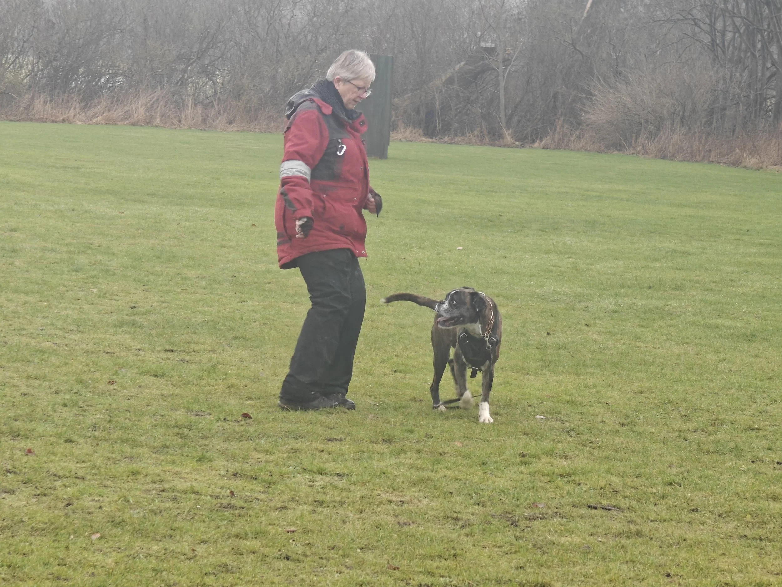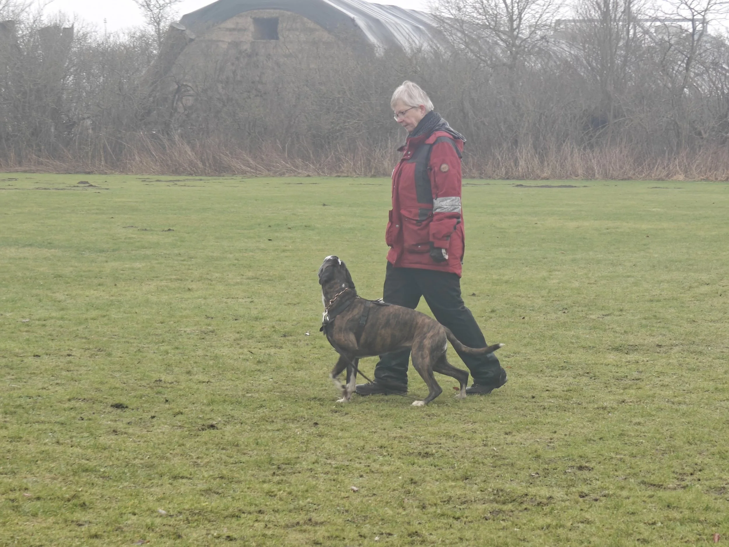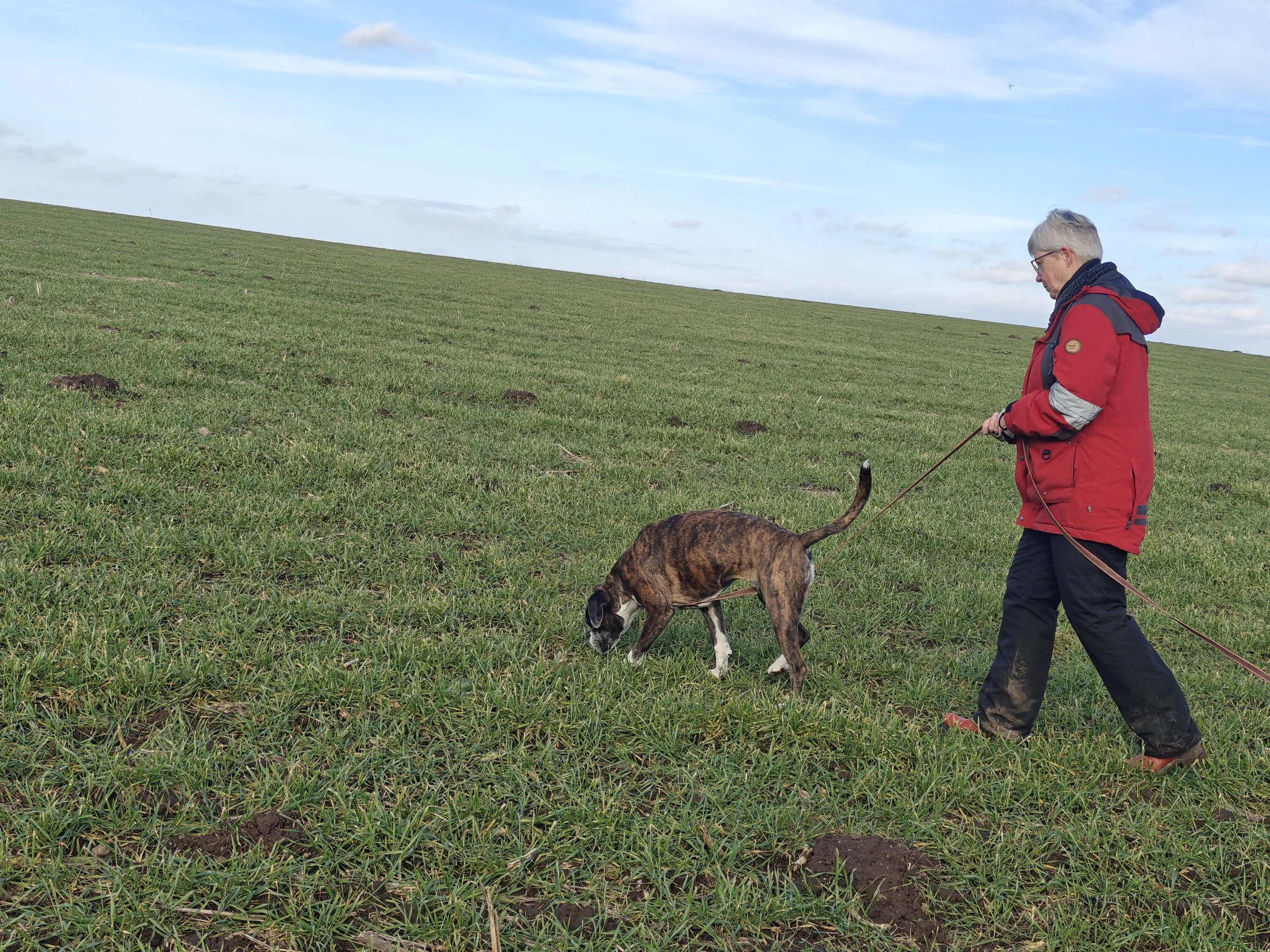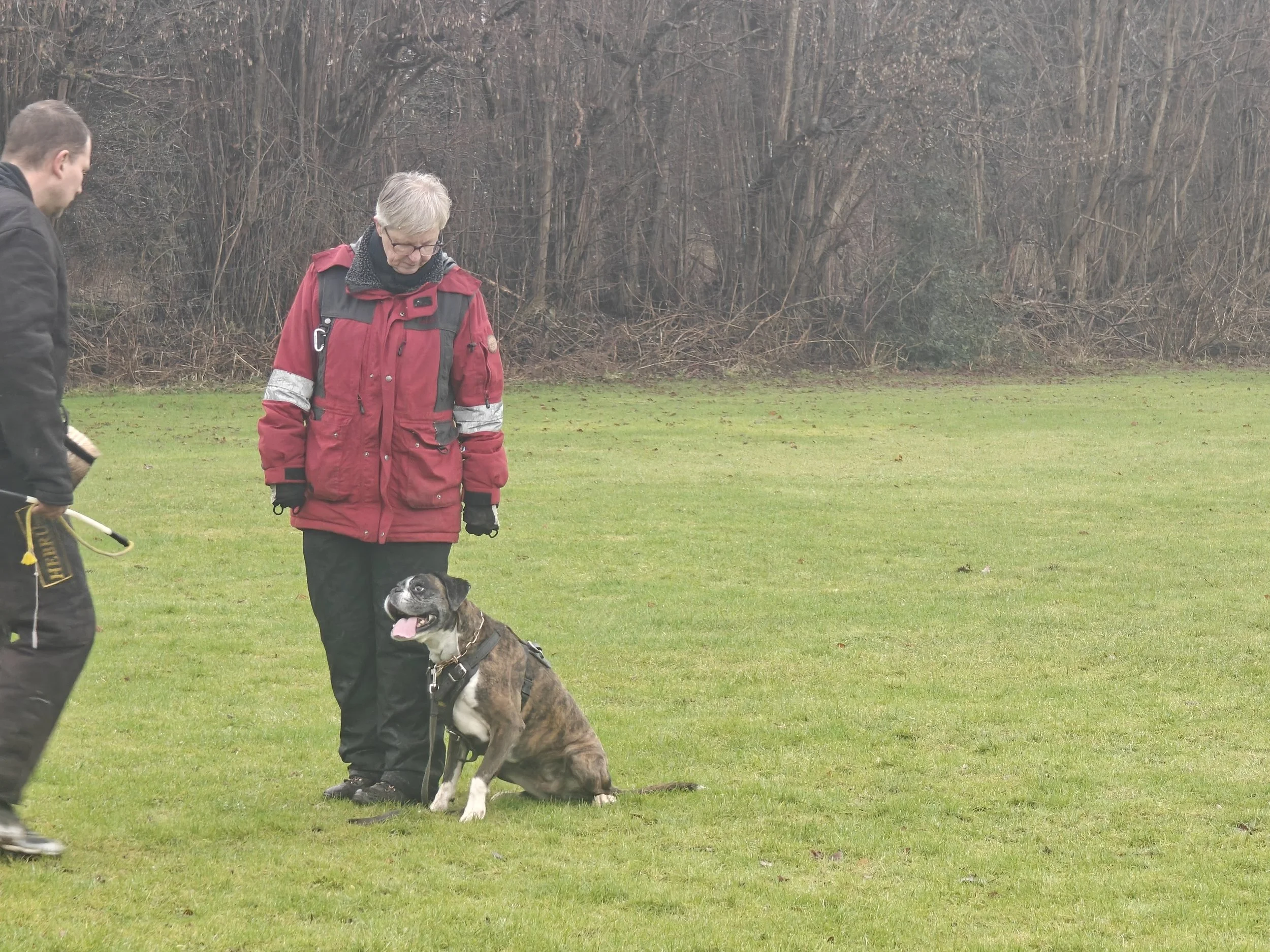 Diamond hat mit Sascha in Aarslev geübt, und wir haben in Halle gearbeitet, hier in unserer Gegend und in Sterup. Und jetzt ist es wieder möglich Fährte zu laufen.