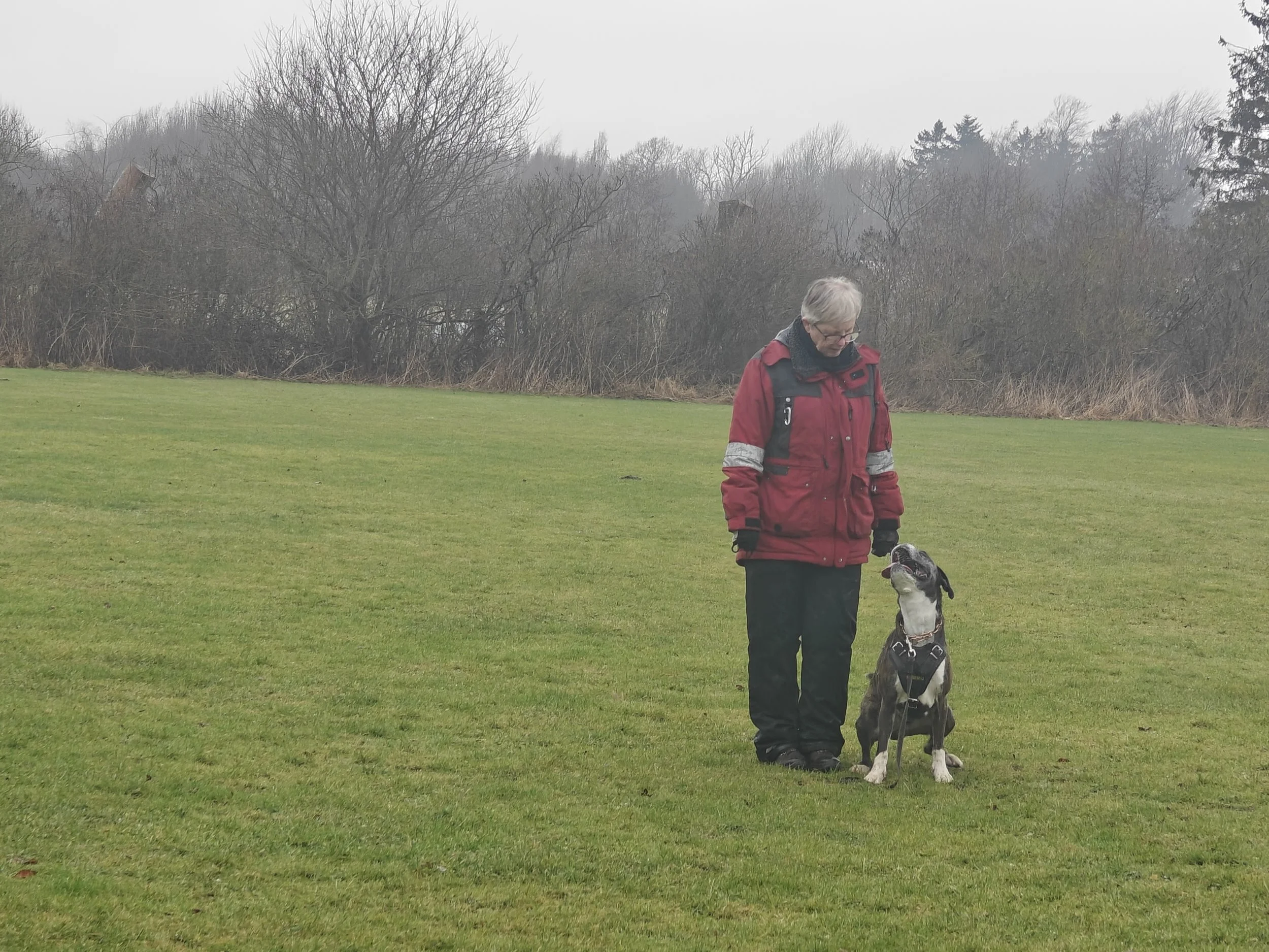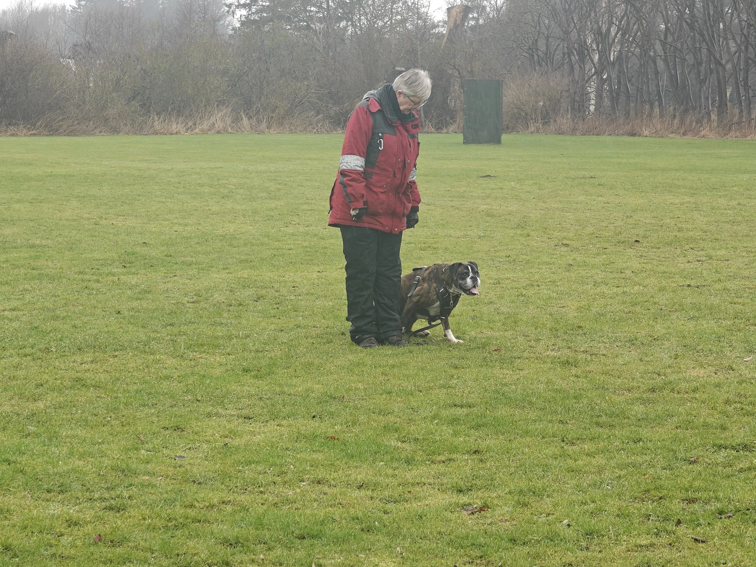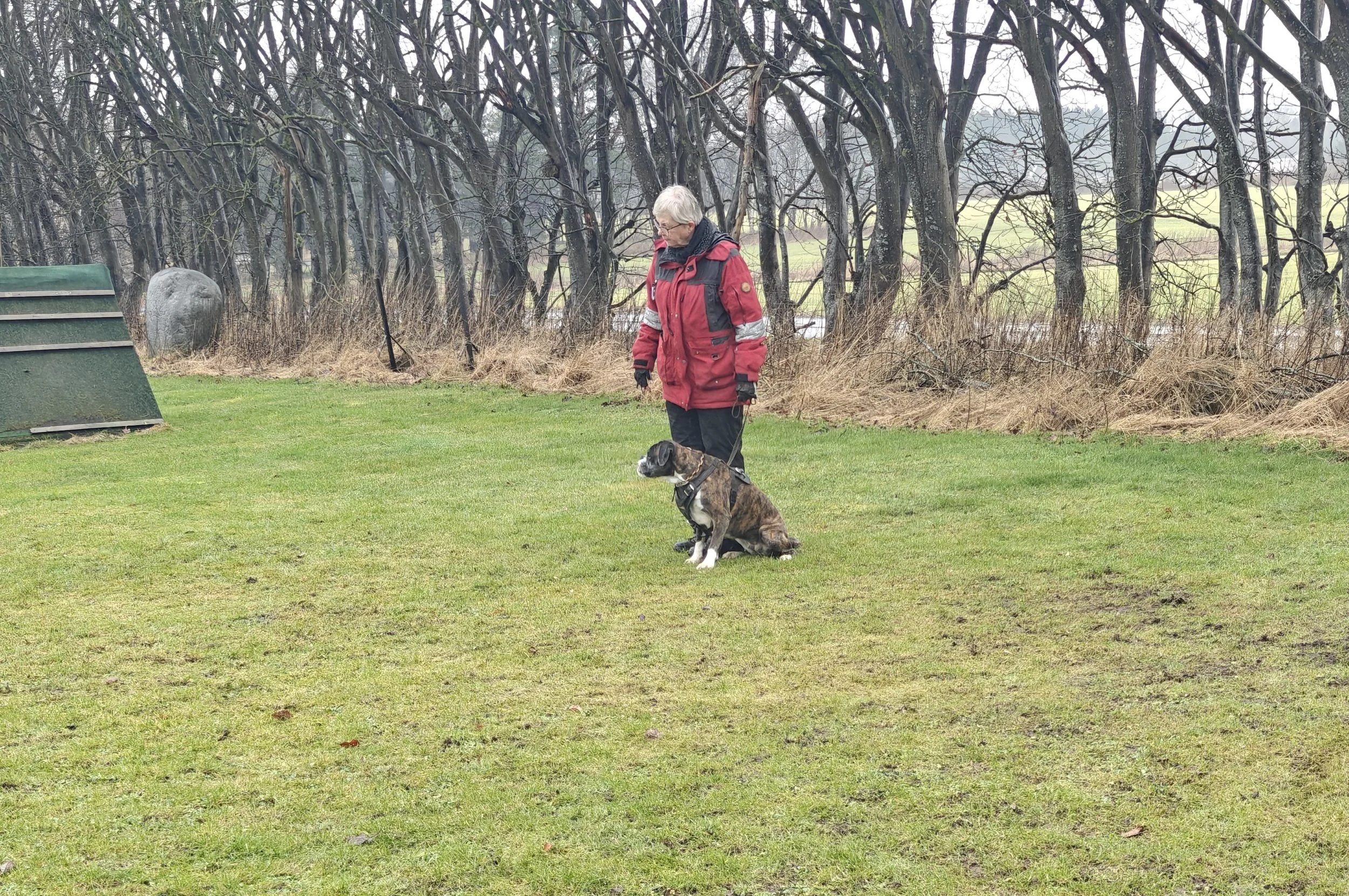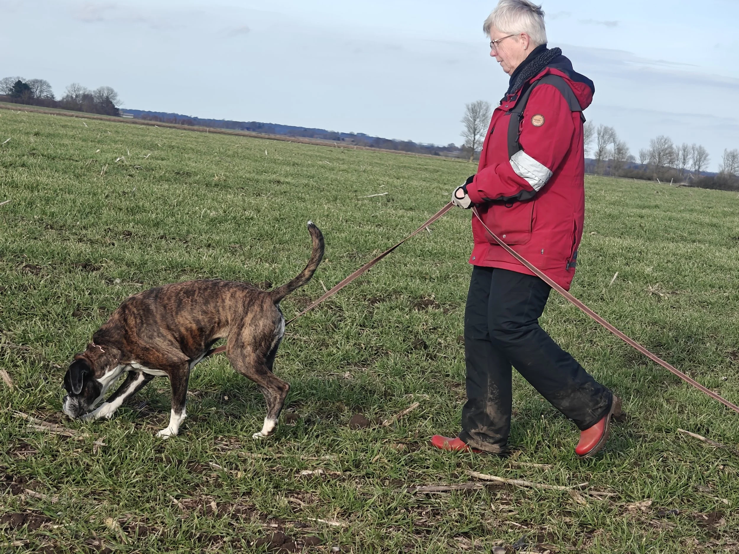 Diamond hat mit Sascha in Aarslev geübt, und wir haben in Halle gearbeitet, hier in unserer Gegend und in Sterup. Und jetzt ist es wieder möglich Fährte zu laufen.