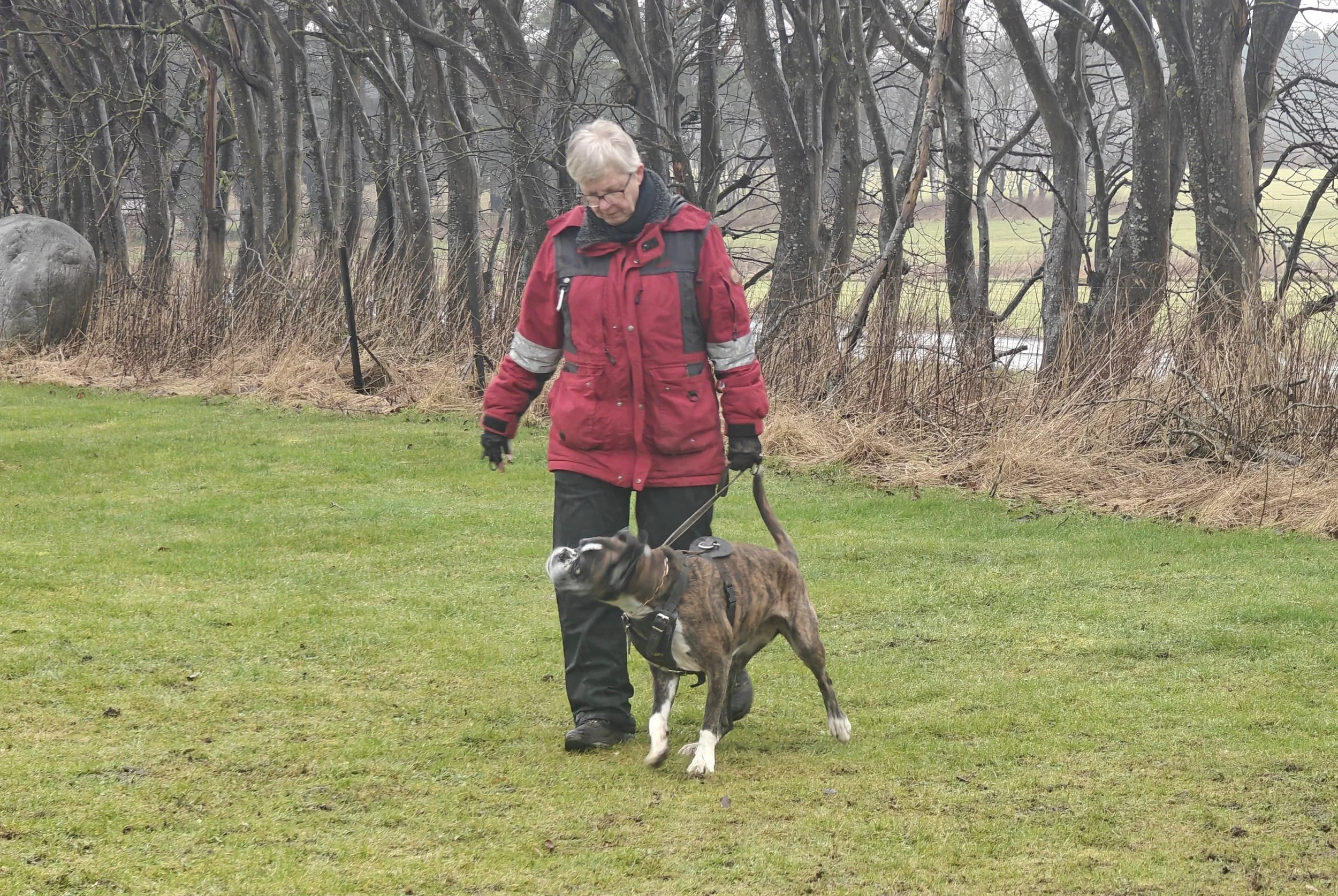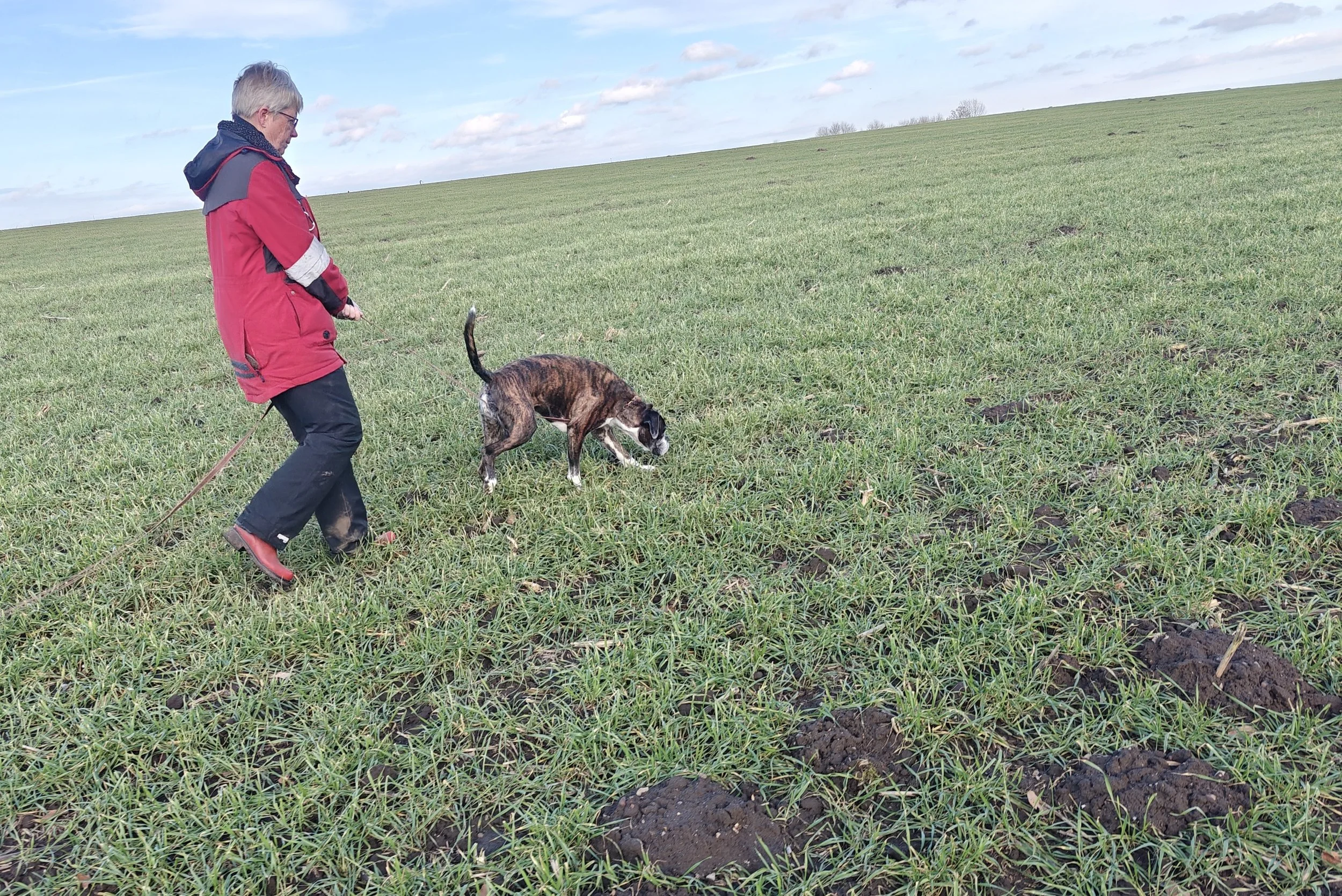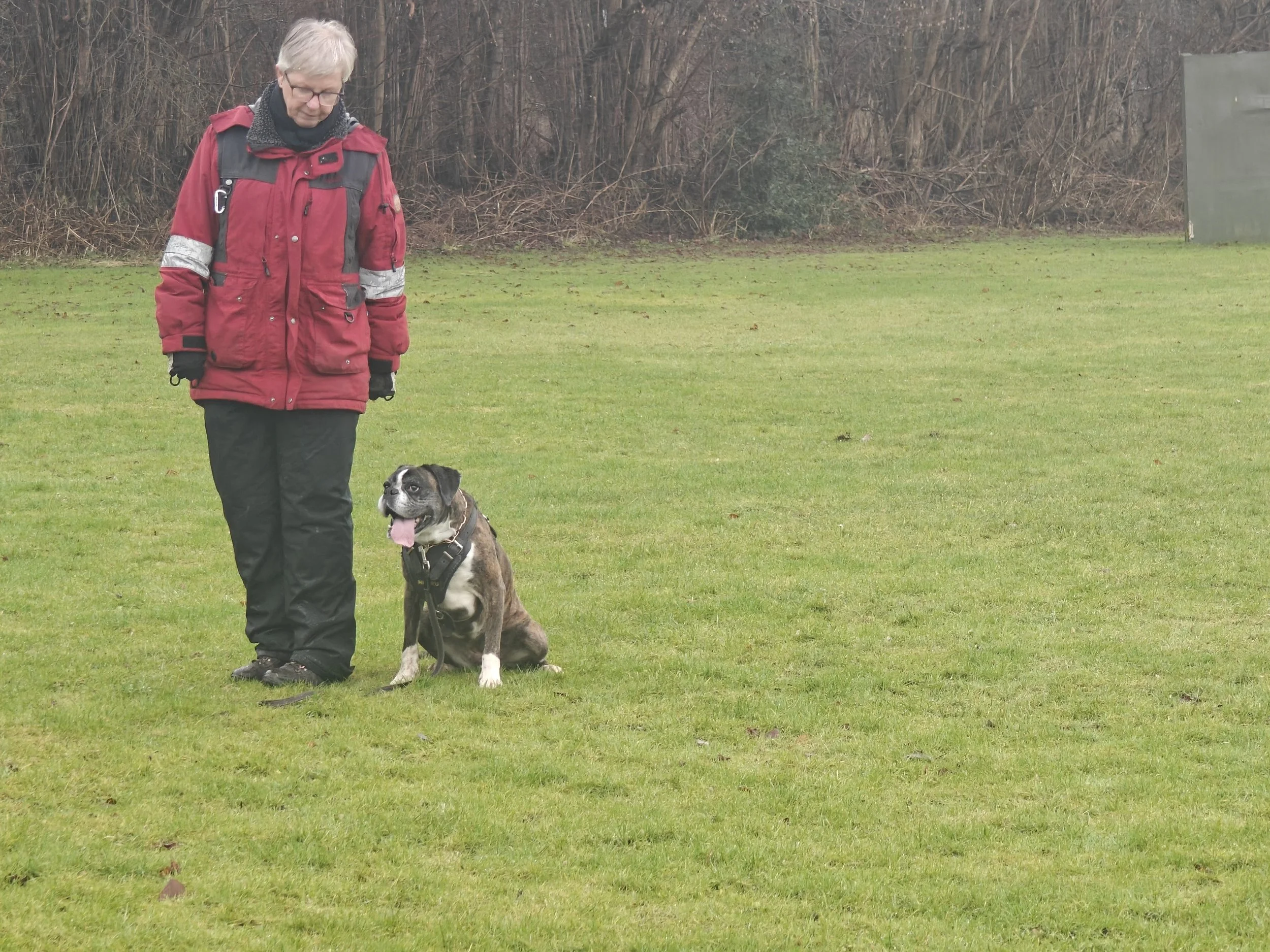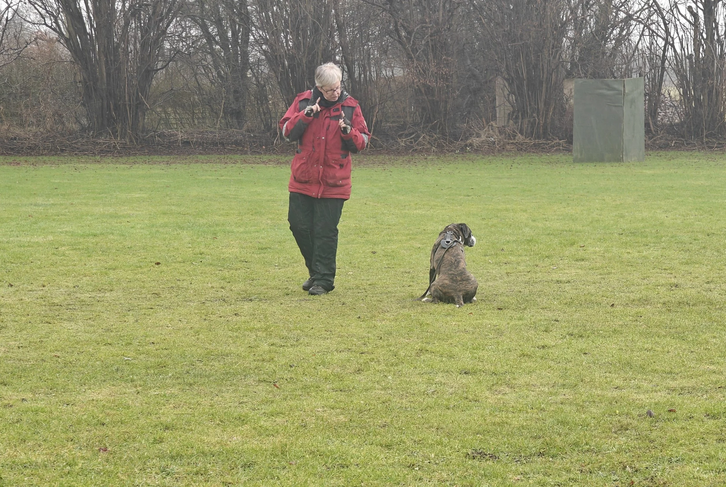 Diamond hat mit Sascha in Aarslev geübt, und wir haben in Halle gearbeitet, hier in unserer Gegend und in Sterup. Und jetzt ist es wieder möglich Fährte zu laufen.